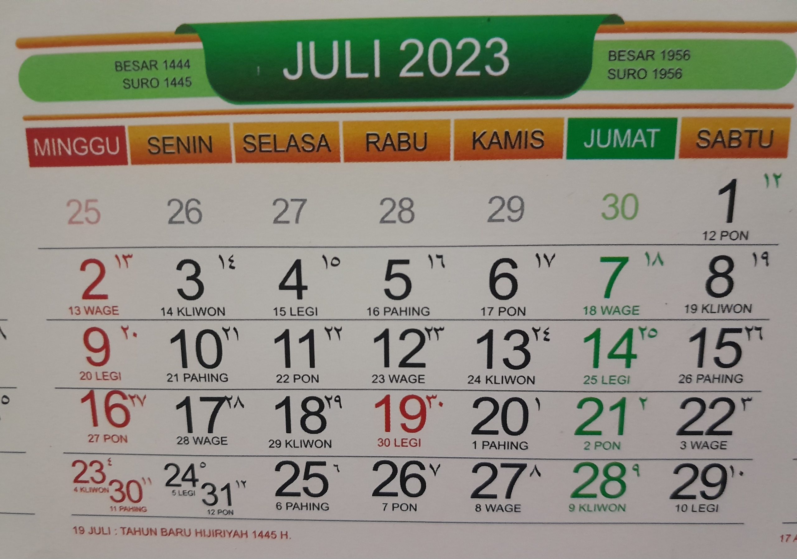 Dikutip dari berbagai sumber. sebelumnya, pemerintah melalui Surat Keputusan Bersama (SKB) 3 Menteri terbaru Nomor 327 Tahun 2023, 1/2023, dan 1/2023 telah menetapkan 1 Muharam atau Tahun Baru Islam 1444 H jatuh pada 19 Juli 2023.