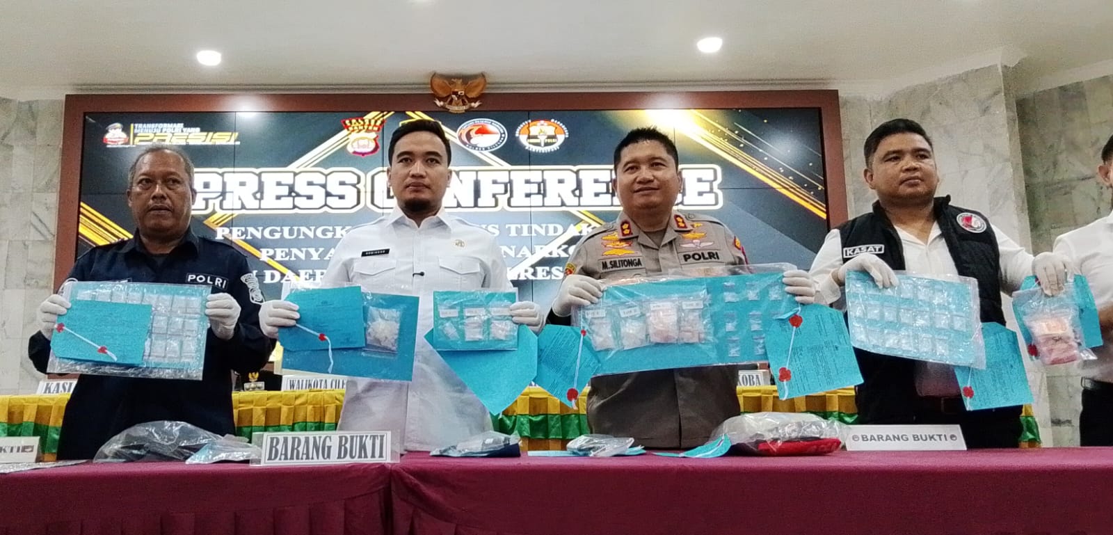 “Sanksinya kategori berat ya, pemberhentian jika terbukti, nunggu persidangan, potensinya pemberhentian,” ujar Wali Kota Cilegon, Robinsar, di Polres Cilegon usai Press Conference Pengungkapan Kasus Tindak Pidana Penyalahgunaan Narkotika di Daerah Hukum Polres Cilegon, Senin (13/4/2026).