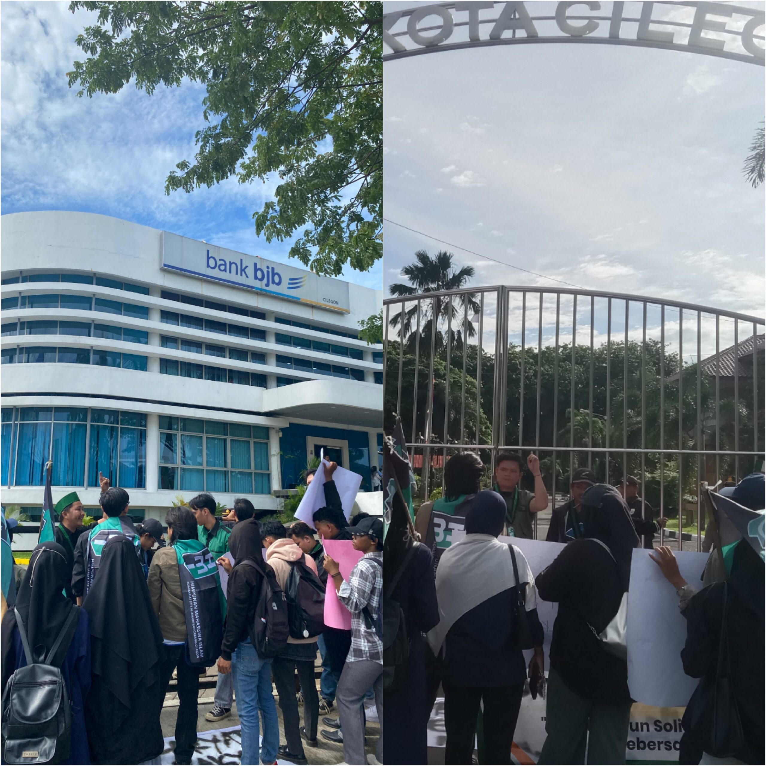 CILEGON,LINTASBANTEN.COM- Himpunan mahasiswa Islam (HMI) Cabang Cilegon menggelar aksi di depan kantor Bank Jabar Banten (BJB) Cabang Cilegon dan di depan kantor DPRD kota Cilegon.pada Selasa,17 Desember 2024.