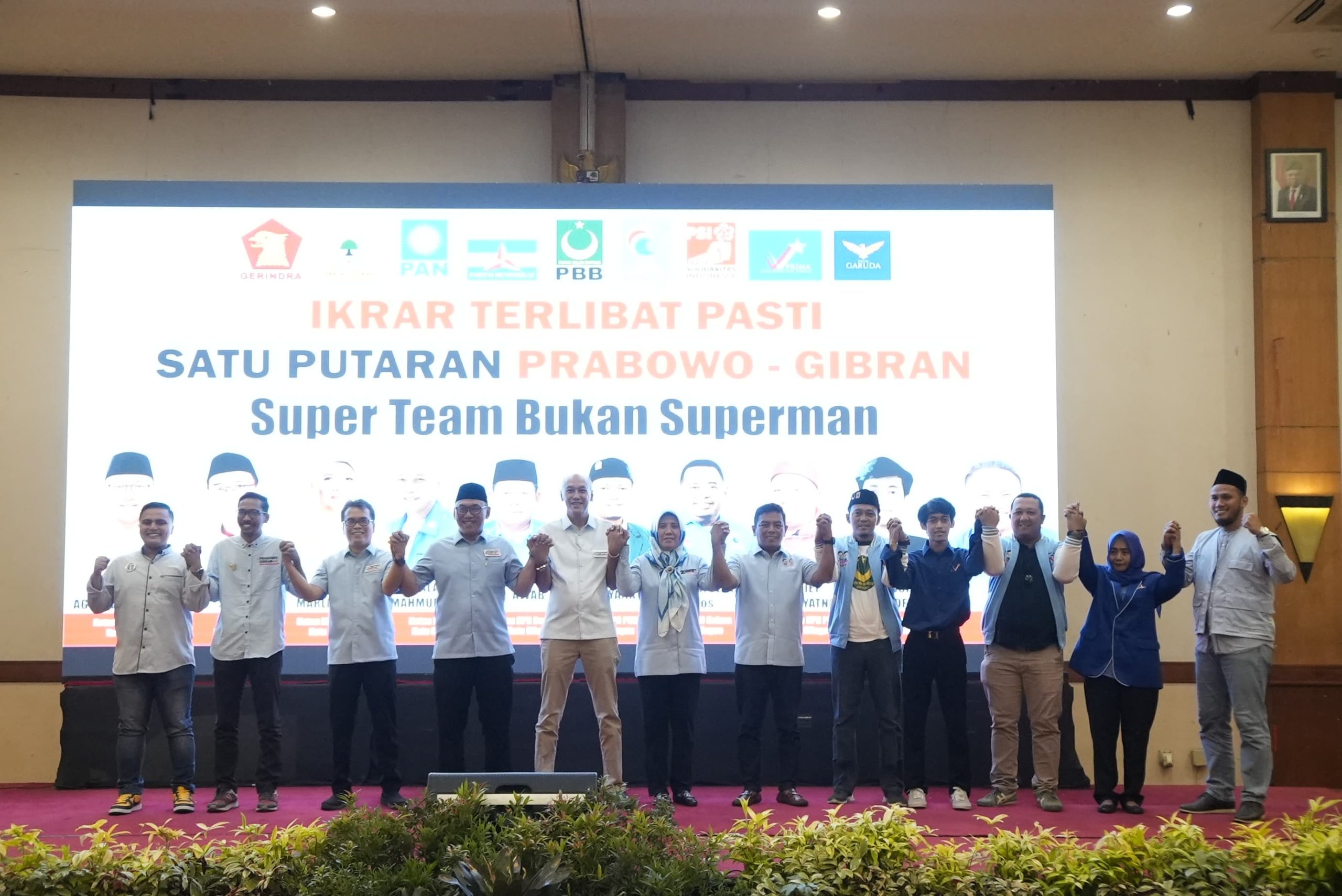 “Harapan satu putaran bisa terwujud dengan catatan solid dan kompak. Kami mohon dengan sangat pasang poster Prabowo-Gibran, kami sudah lihat beberapa partai sudah pasang Prabowo Gibran, kami juga memohon kepada para caleg pasang poster Prabowo-Gibran dimasing-masing poster atau alat peraga kampanyenya. Saya yakini pasti akan ada dampak positifnya bagi para caleg. Kemenangan sejatinya karena kebersamaan, kami istilahkan ini super team bukan Superman, karena kalau Superman bekerja sendiri-sendiri,” kata Helldy dalam sambutannya.
