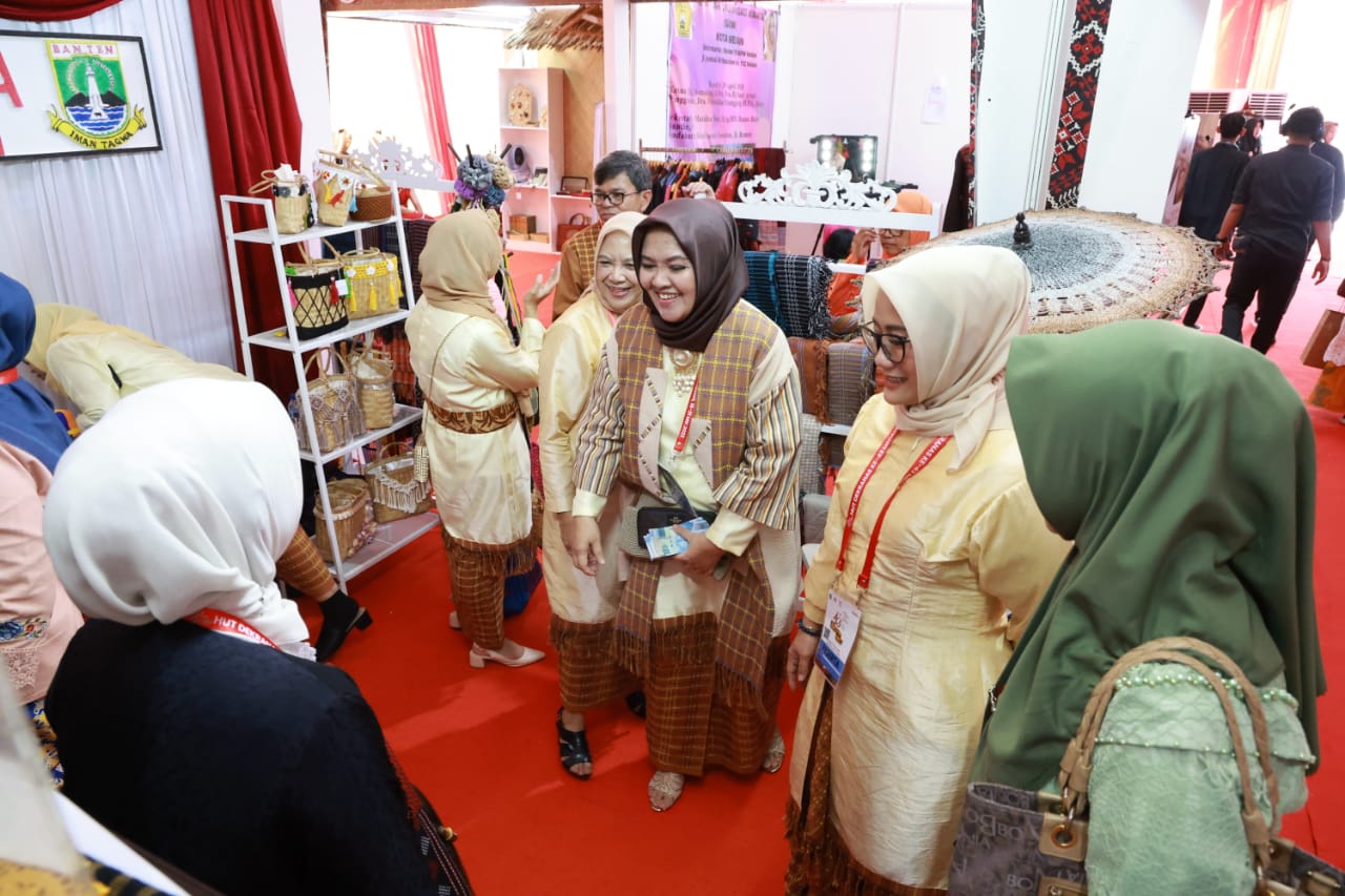 Diungkapkan, Dekranasda Banten mempromosikan produk unggulan daerah Banten berupa Tenun Baduy yang dikombinasikan dengan fashion serta mempromosikan rajutan payung hingga tas khas Provinsi Banten.