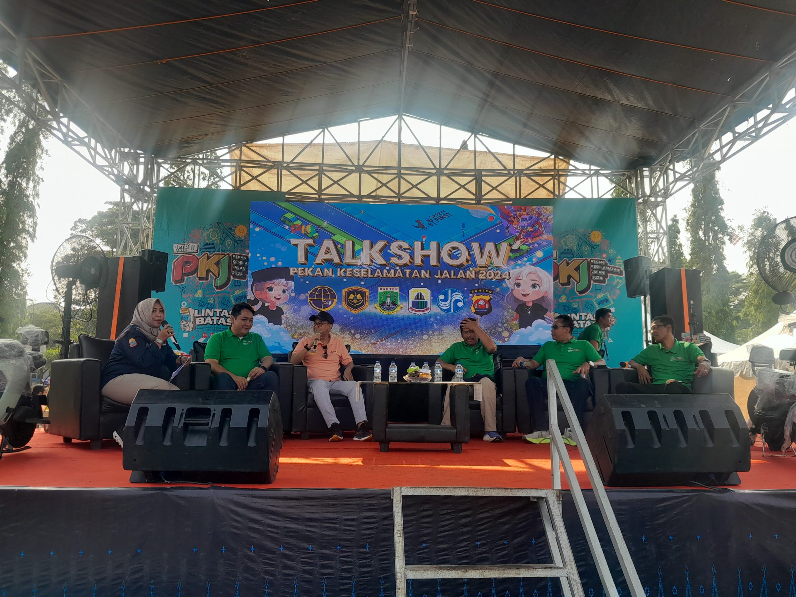LEBAK,LINTASBANTEN.COM- Puncak Pekan Keselamatan Jalan (PKJ) Tahun 2024 tingkat Provinsi Banten, ditutup dengan acara Talkshow yang menghadirkan sejumlah narasumber yang berkompeten di bidangnya. Mulai dari Dishub Provinsi Banten, Kepolisian Polda Banten, hingga narasumber dari Kementerian Perhubungan Republik Indonesia (Kemenhub RI).