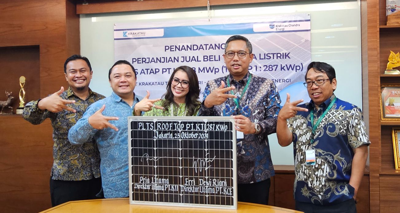 JAKARTA,LINTASBANTEN.COM- PT Krakatau Chandra Energi (KCE) PT. Krakatau Tirta Industri (KTI) melakukan penandatanganan perjanjian Jual Tenaga Listrik Pembangkit Listrik Tenaga Surya Atap.