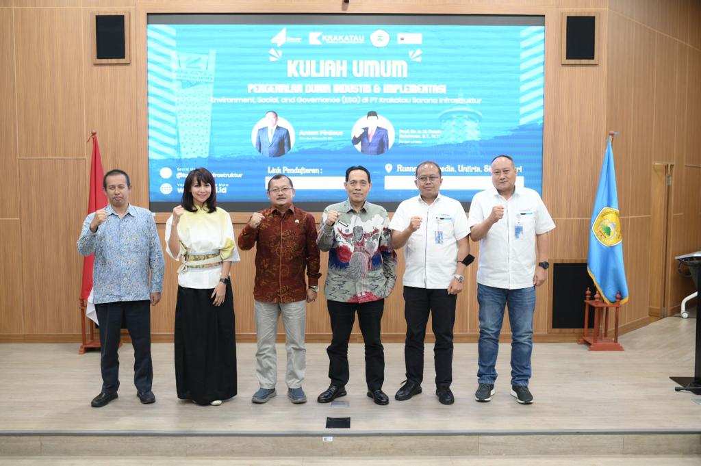 SERANG, LINTASBANTEN.COM – PT Krakatau Sarana Infrastruktur (PT KSI) menggelar kuliah umum bertajuk Pengenalan Dunia Industri dan Implementasi Environment, Social, and Governance (ESG) di PT KSI pada Rabu (14/6/2023) di Auditorium Multimedia, Kampus Untirta Sindangsari, Kabupaten Serang.