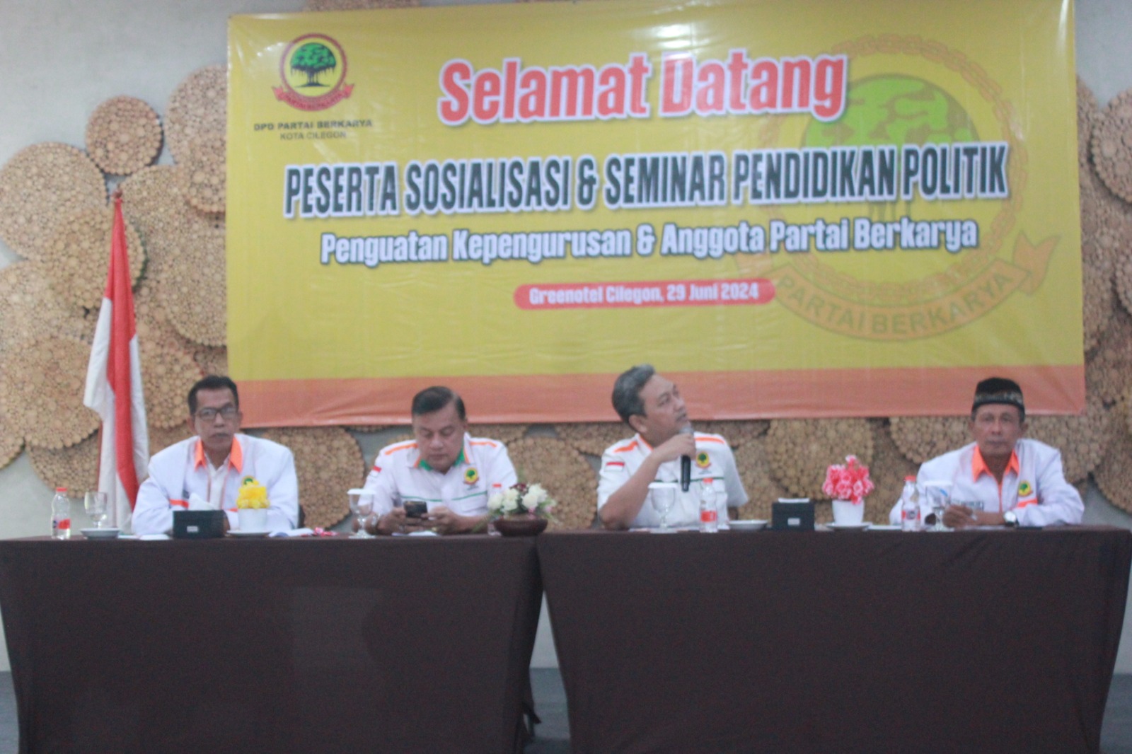 CILEGON, LINTASBANTEN.COM – DPD (Dewan Pimpinan Daerah) Partai Berkarya Kota Cilegon mengadakan sosialisasi dan seminar pendidikan politik di Greenotel, Sabtu, 29 Juni 2024.