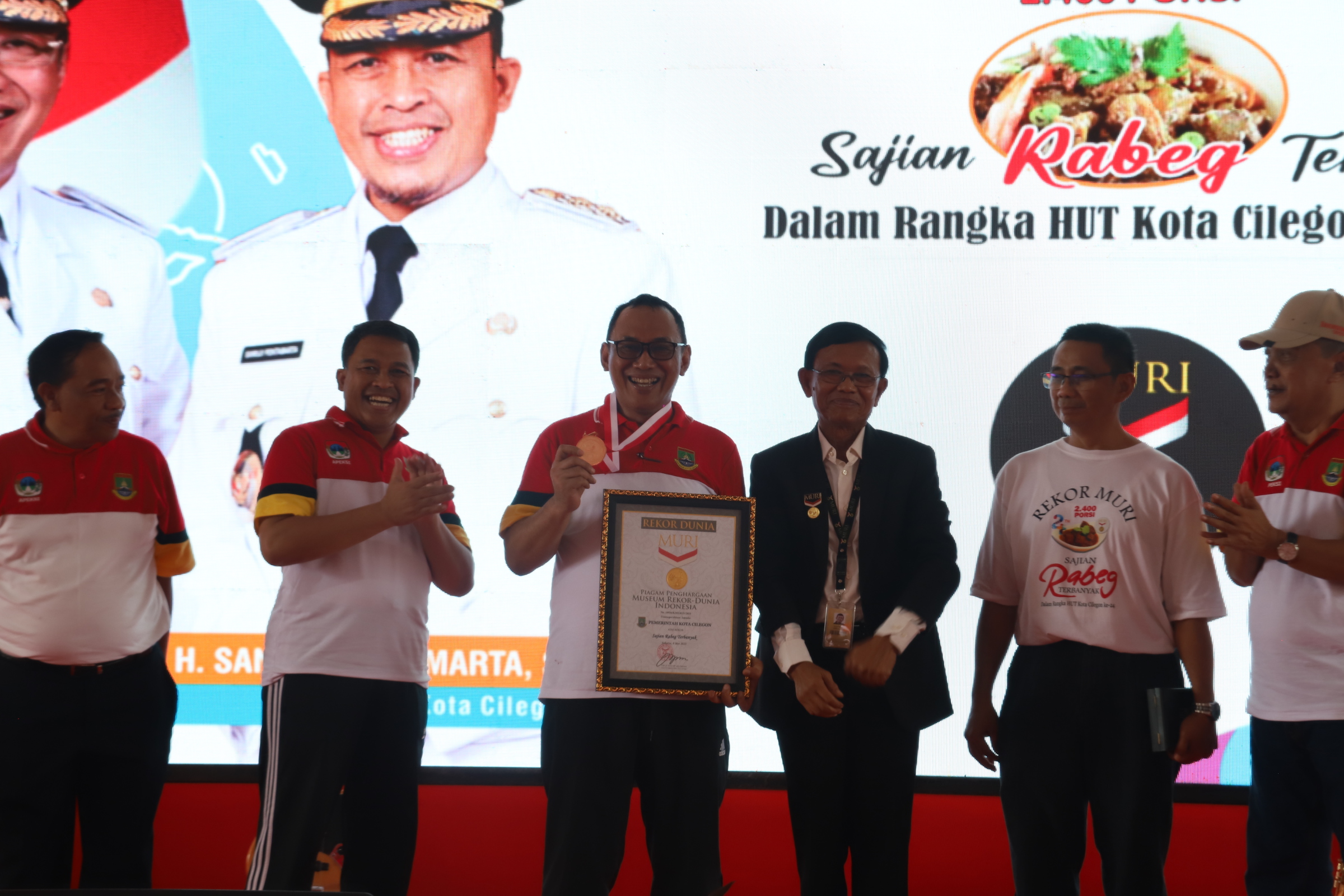 Pemkot Cilegon tercatat di Museum Rekor Dunia Indonesia (MURI) karena telah menyajikan menu rabeg sebanyak 2.400 porsi, di halaman kantor Wali Kota Cilegon, Jalan Soedirman, Senin 8 Mei 2023.